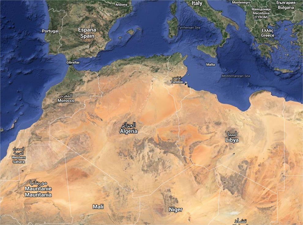 Carte Algérie satellite, la carte satellite vu du ciel de l'Algérie.